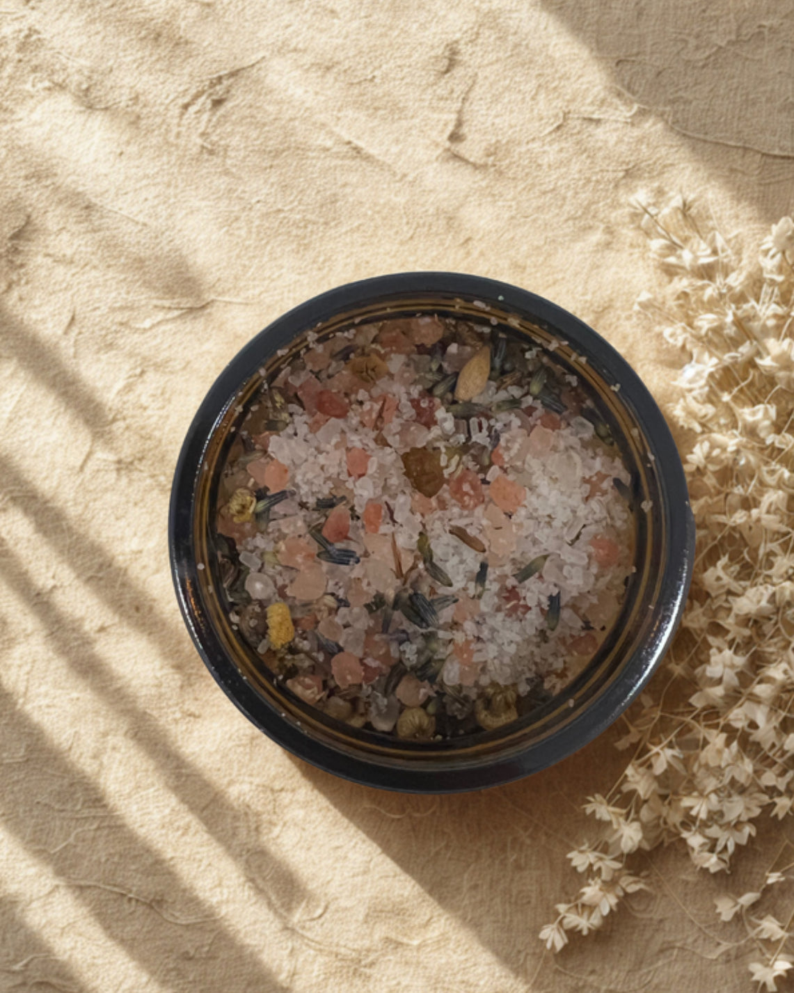 Carefully packed in eco-friendly amber glass jars to preserve purity and protect ingredients from UV rays. The glass jar is a sustainable choice that helps reduce plastic waste while keeping your bath salts fresh and vibrant.